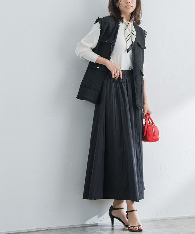 スカーフが大人っぽいスタイリングに仕上げるニットセットアイテムです。シャープなラインがアクセントになったスカーフは、上品ですっきりとした印象に。ニットは単体でも使いやすいシンプルなデザインで、デイリー使いにも最適。シーンやコーディネートに合わせてアレンジが楽しめる一枚です。