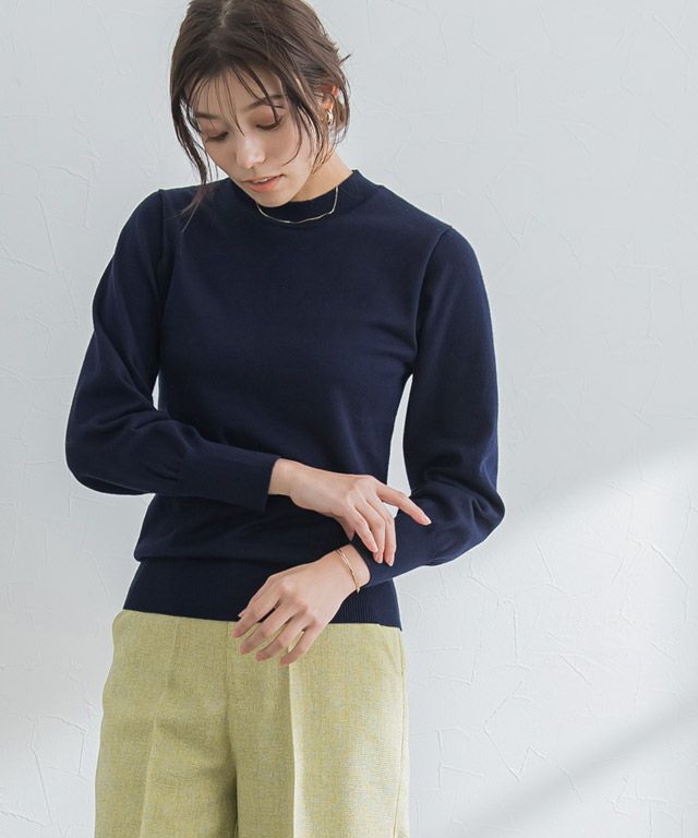 また、ニット製品は生産の過程上「生地を織る際の糸の継ぎ目」繊維の「混紡」、プレス加工、製品洗い加工によって形やサイズ(5cm前後)に誤差が生じる場合がございますが品質上の問題はございません。