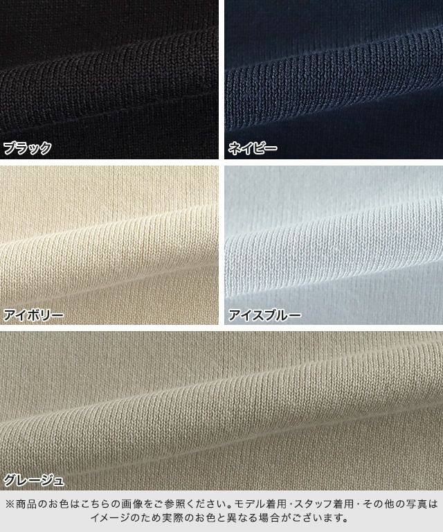 また、ニット製品は生産の過程上「生地を織る際の糸の継ぎ目」繊維の「混紡」、プレス加工、製品洗い加工によって形やサイズ(5cm前後)に誤差が生じる場合がございますが品質上の問題はございません。