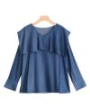 デニム風に染めたサテン素材なので、カジュアルすぎずフェミニンさのあるブラウスに。薄手で落ち感のある風合いが、女性らしい雰囲気へと導きます。