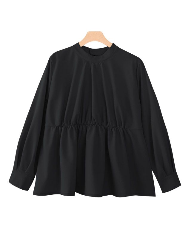 ウエスト部分に施したギャザーがふんわりとしたシルエットで女性らしく、体型カバーにもなる一枚。ハイネックのディテールがきちんと感を演出してくれます◎