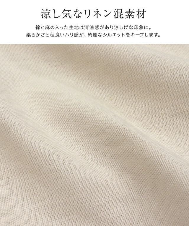 綿と麻の入った生地は清涼感があり涼しげな印象に。柔らかさと程良いハリ感が、綺麗なシルエットをキープします。