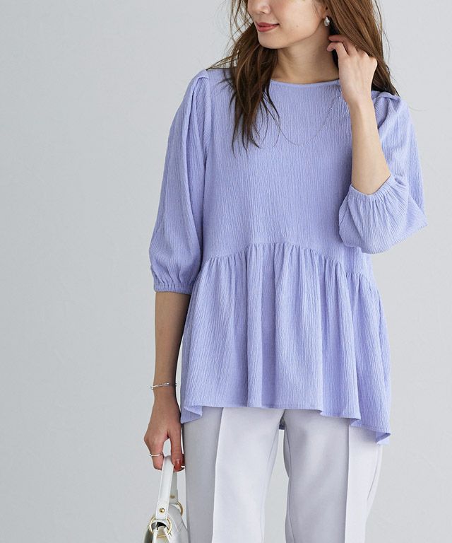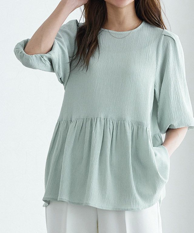 シボ感のある素材が表情をプラスし、涼しげな印象に。薄手で柔らかく軽い着心地です。