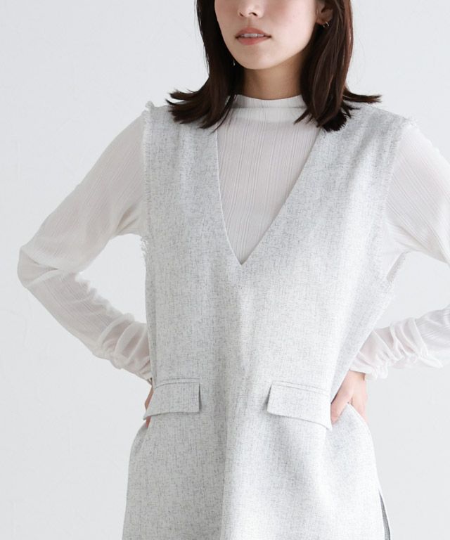 袖口はシフォン素材で切り替えを施しクシュッと軽やかに仕上げました。一枚での着用はもちろん、インナーとしても使えるのでシーズンを問わず活躍するアイテムです。