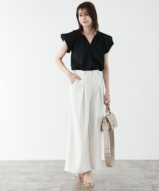 程良く甘さがあって着映える“キーネックパフスリーブブラウス”