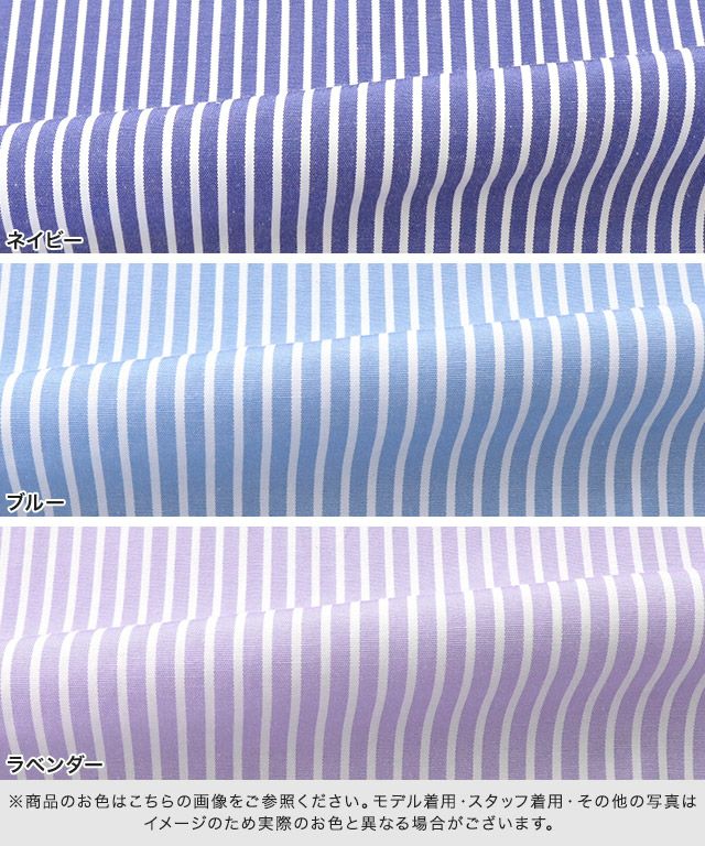 細めのストライプ柄が大人っぽく上品な印象に。さらっとした綿混素材なので肌触りも良く、着心地の良い一枚です。