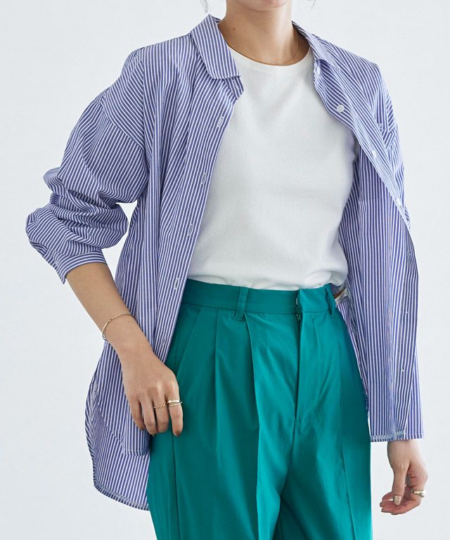 旬スタイルが完成する“ストライプルーズシルエットシャツ”