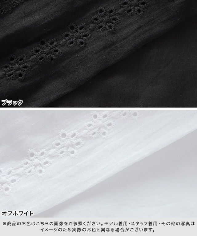コットン袖レースブラウス 【Pierrot】【スピード配送】