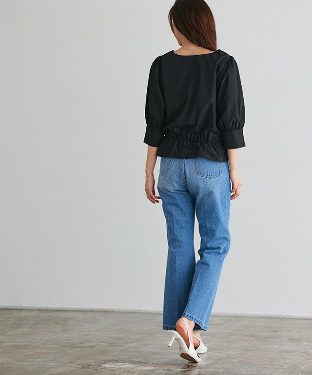 程良くフェミニンなデザインが着映え感を引き立てる主役級ブラウス。キーネックにすることでデコルテのキレイ見えを叶えます。ボリュームのある袖デザインは二の腕周りをカバー◎ウエストに施したギャザー切替でスタイルアップが実現するところも嬉しいポイント。幅広いシーンで大活躍の一枚です。