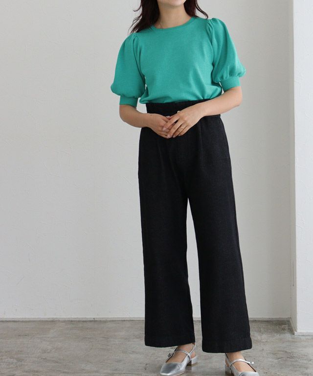 肩からボリュームのあるパフスリーブが女性らしいデザインニット。袖にボリュームを持たせつつ、袖口はリブでメリハリのあるシルエットに仕上げました。見頃はシンプルなのでボトムスを選ばず、カジュアルからきれいめまで幅広く着回せる一枚です。
