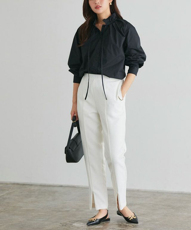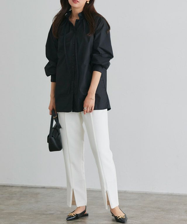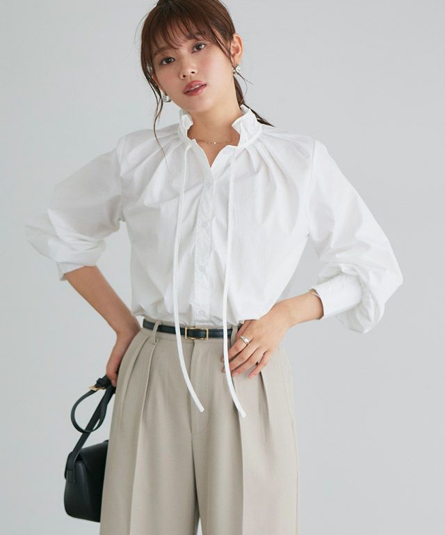 体型カバーも着映えも魅せる“フリルカラーシャツ”