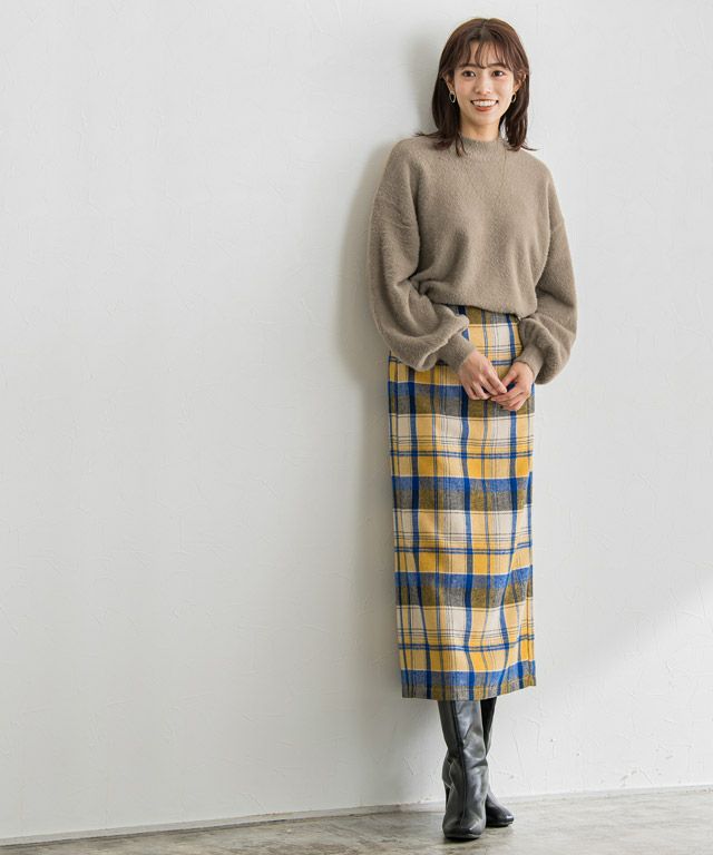 ふんわり女性らしさ漂う“シャギーハイネックバルーン袖ニット”