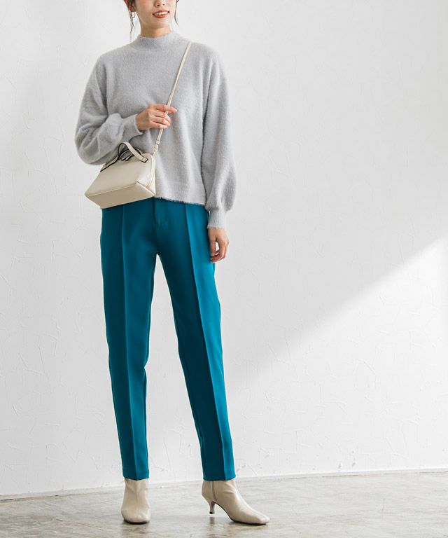 丸みのあるバルーン袖デザインが女性らしさを漂わせます。ゆったりとしたサイズ感なので体型カバーにも◎首に程良く沿うハイネックが上品さをプラスします。