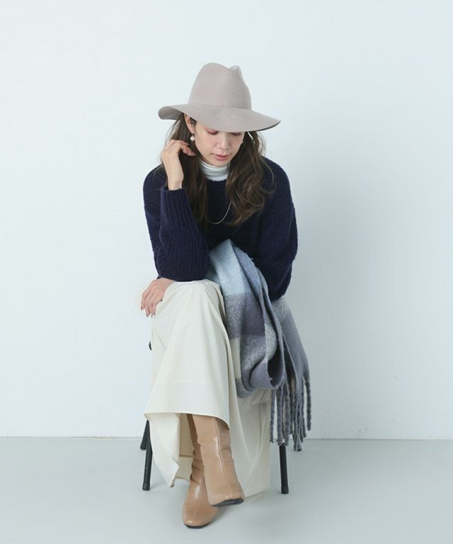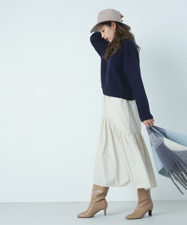 肌あたりふんわりと柔らかな「ウォーム感」のあるニット素材を使用。裏畦の編地で表情のあるシルエットを表現しました。