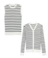 Vネックで女性らしい印象のカーディガンと、インナーに合わせてもごわつかないノースリーブニットのアンサンブル。単品使いもでき、ON/OFF問わず着回せるアイテムです◎