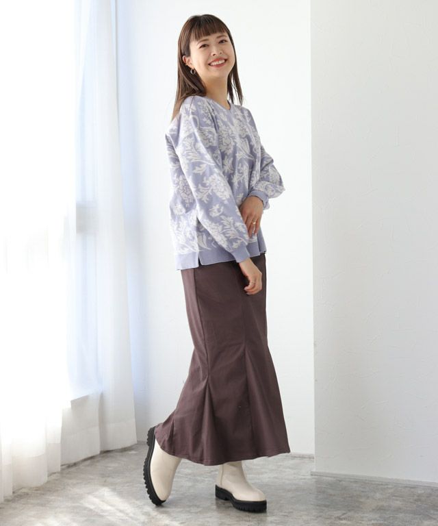 L 着丈は骨盤あたりの丈感でした。袖丈は手首ちょうどです。身幅はゆとりがありました。一枚で着映えする柄アイテムです◎柔らかい肌触りで着心地の良い生地でした。