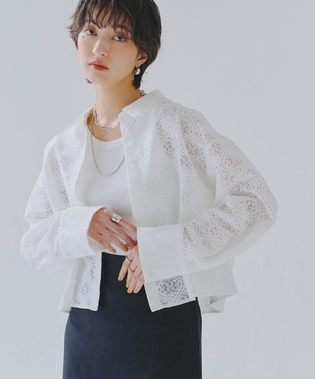 [RASW]レースクロップドワイドシャツ【スピード配送】