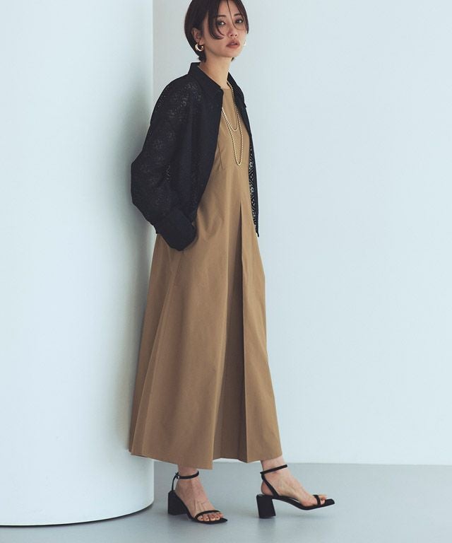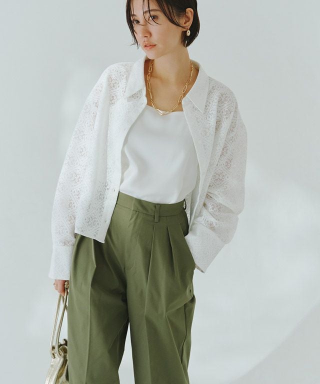 細やかな繊細なレース柄がフェミニンになりすぎず大人も着やすい素材感。綿混の程よい柔らかさが心地よく、綺麗なシルエットをキープします。さりげない透け感で軽やかな印象に導きます。