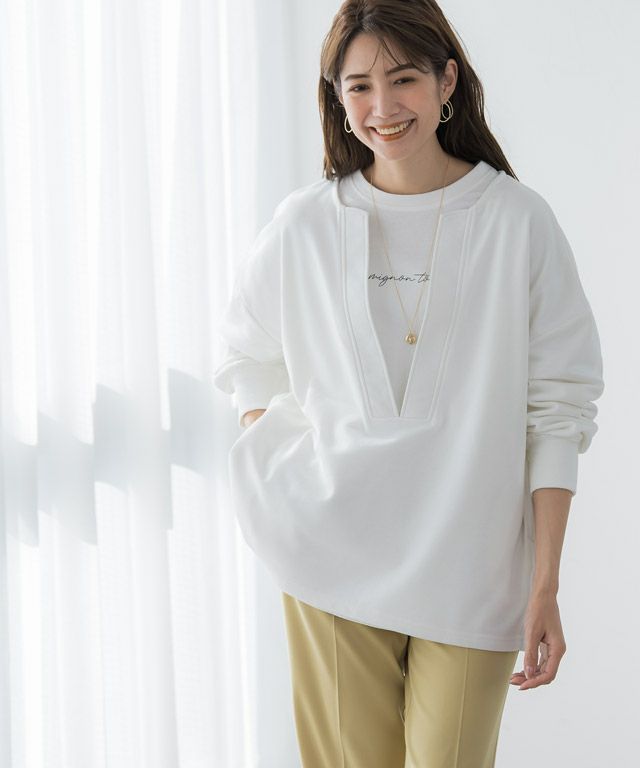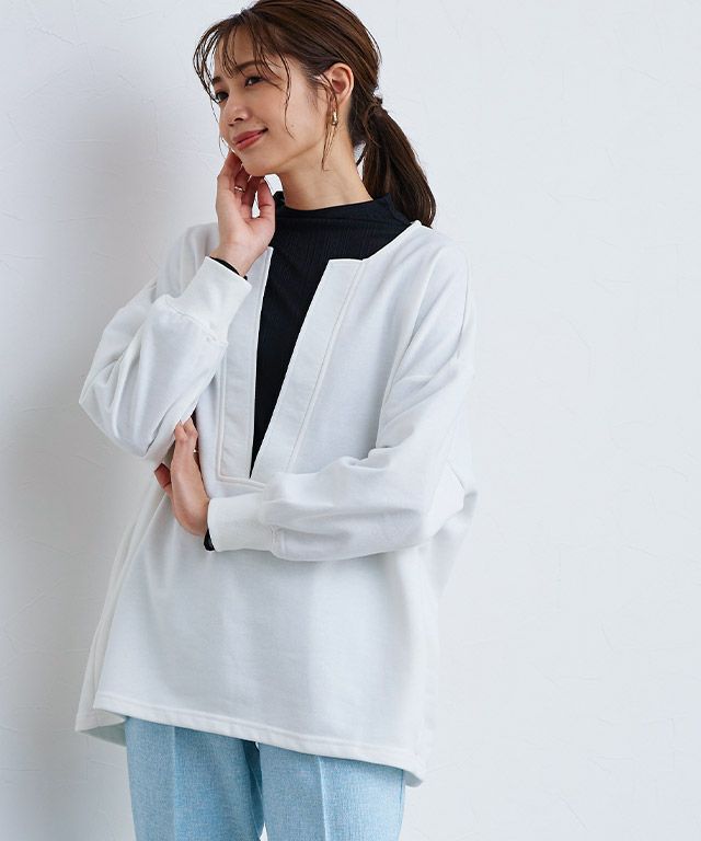 大人見えするカジュアルアイテム“ 深Vネック裏毛プルオーバー”