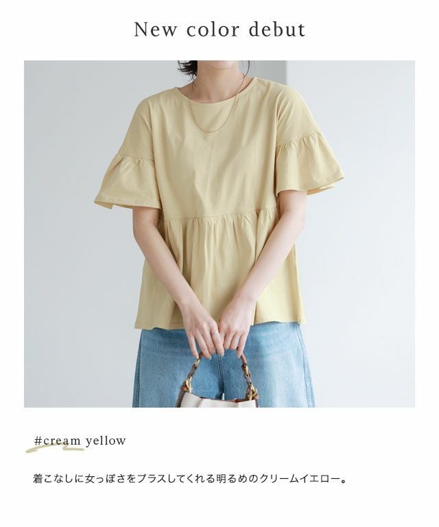 綿100% ギャザーフリルスリーブTシャツ