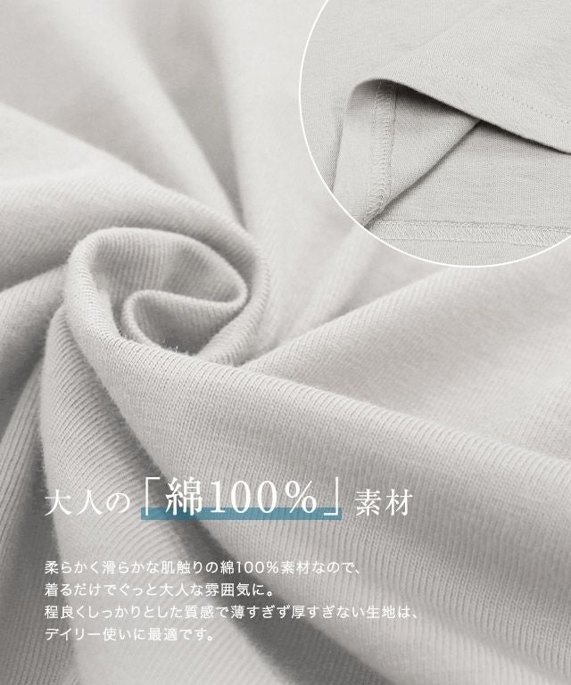 柔らかく滑らかな肌触りの綿100%素材なので、着るだけでぐっと大人な雰囲気に。程良くしっかりとした質感で薄すぎず厚すぎない生地は、デイリー使いに最適です。