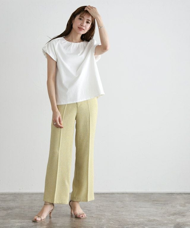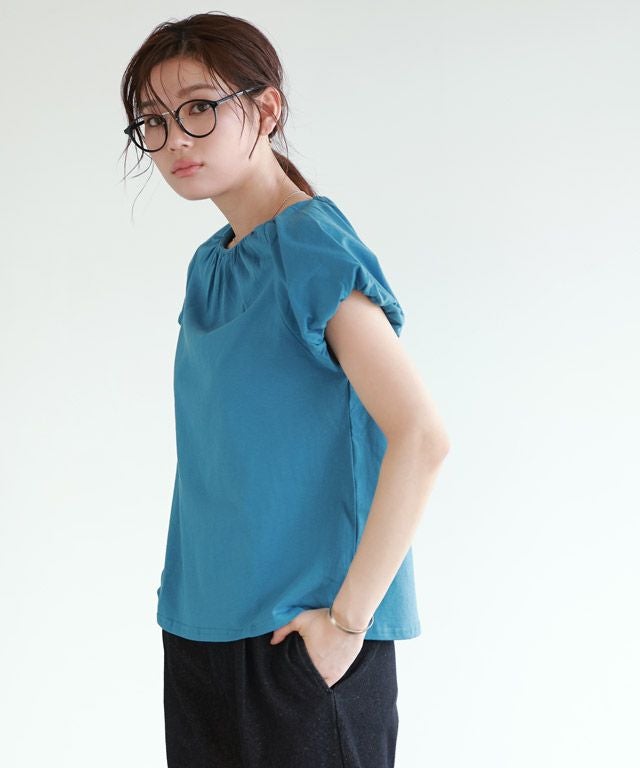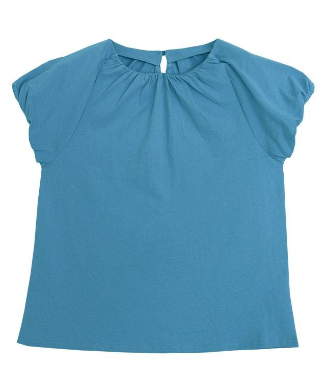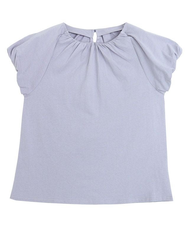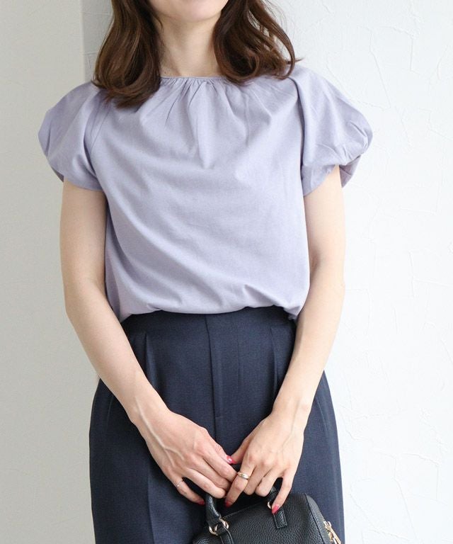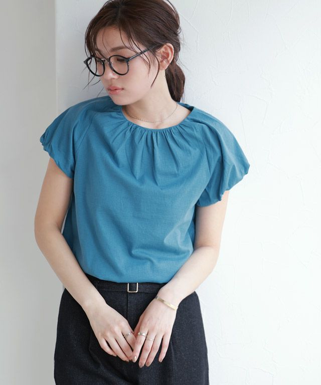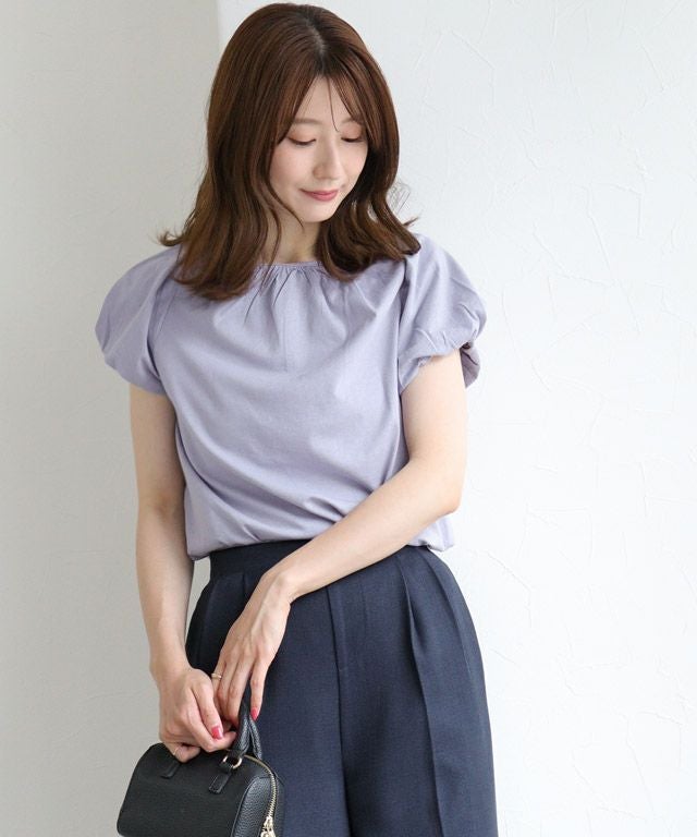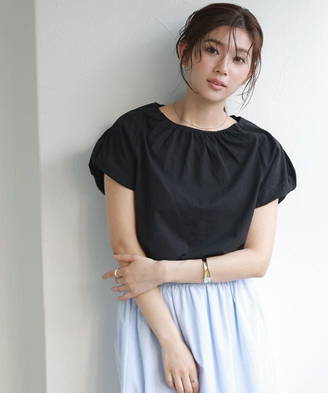 肩やネックに施したギャザーデザインがボリューム感を引き立ててくれ、フェミニンな印象に。フレンチスリーブなので、二の腕周りをカバーしてくれるのも魅力の一つです。