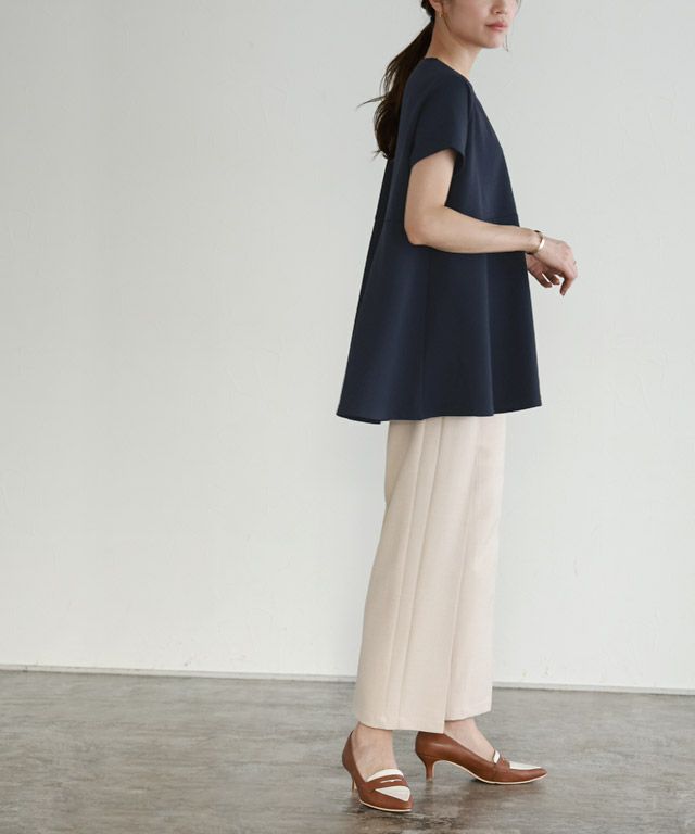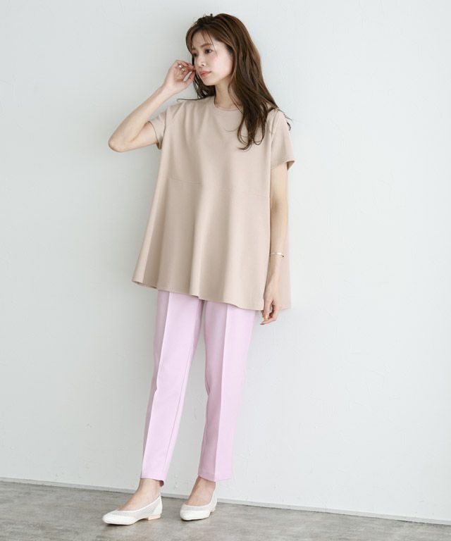 程よく広がるフレアシルエットが女性らしさを引き立てる一枚。身頃に切り替えを入れたディテールがシンプルになりすぎず、スタイリングにアクセントをプラスしてくれます。身幅も程よいゆとりなので体型カバーが実現。