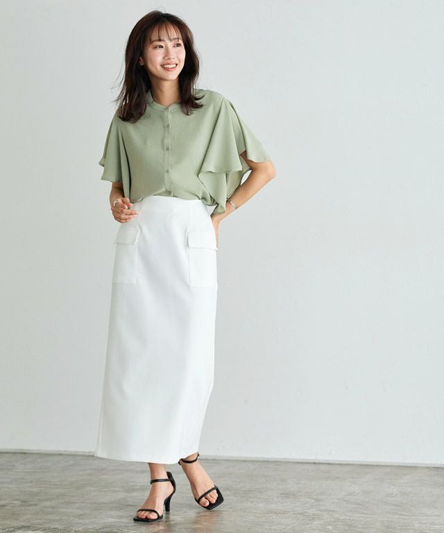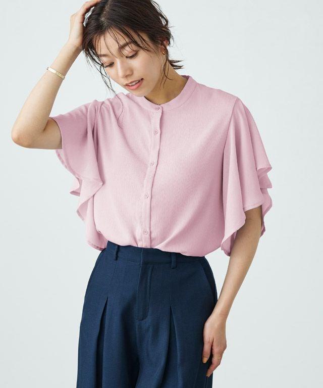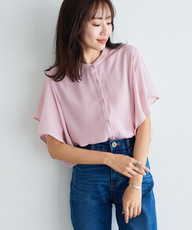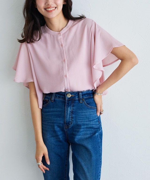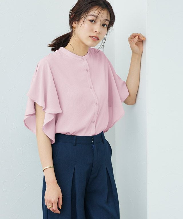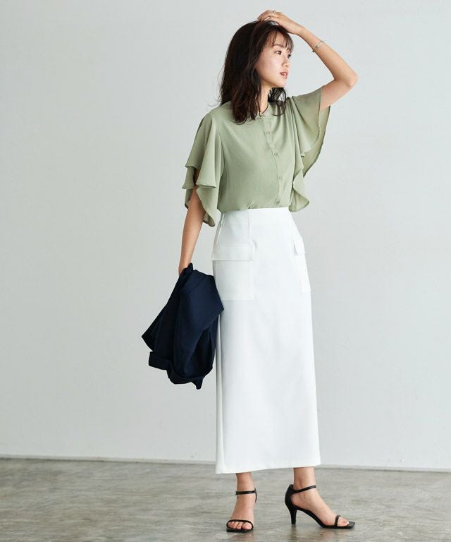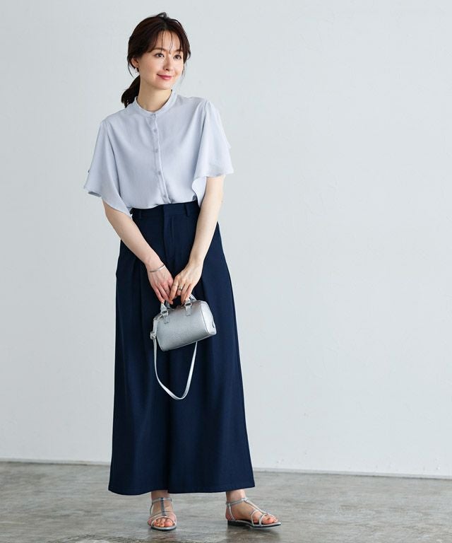女性らしく華やかな印象を与えてくれるフレアデザイン。フレアスリーブは気になる二の腕を隠しつつ、華奢見せを叶えてくれます。裾は二枚仕立てのデザインをあしらい、一枚で着映え感のあるブラウスに仕上げました。