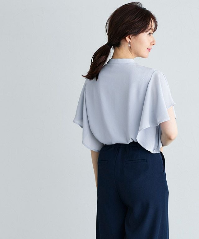 フレアスリーブシアー楊柳ブラウス 【Pierrot】【スピード配送】