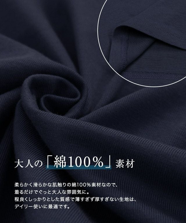 柔らかく、滑らかな肌触りの綿100%生地なので、着るだけでぐっと大人な雰囲気に。程良くしっかりとした質感の薄すぎず厚すぎない生地は、デイリー使いに最適です。