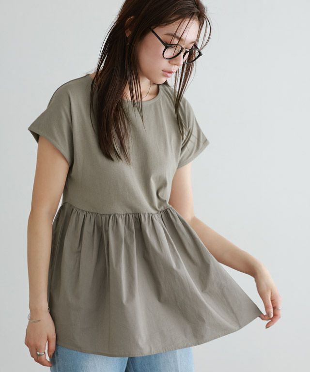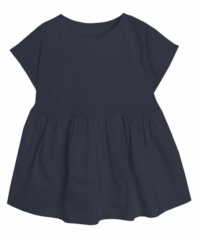 ウエストにギャザーを施し、ふんわりとしたシルエットが女性らしく、一枚で着映え感を演出。ウエスト周りの体型カバーになるところも嬉しいポイントです。身頃はふんわりとしたシルエットなので肩はフレンチスリーブで袖もすっきりとしたサイズ感に仕上げました。