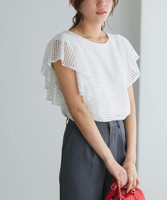 【アウトレットSALE!】メッシュフリルスリーブブラウス 【Pierrot】【スピード配送】