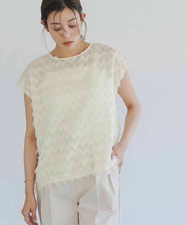 表情魅せる、着映えブラウス“フリンジシフォンフレンチブラウス”