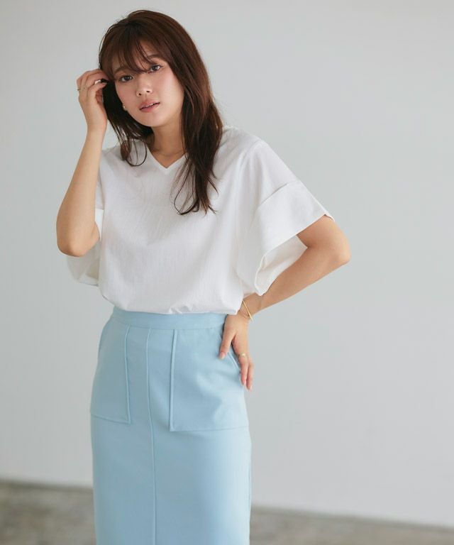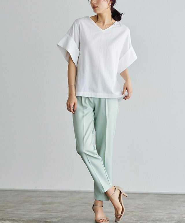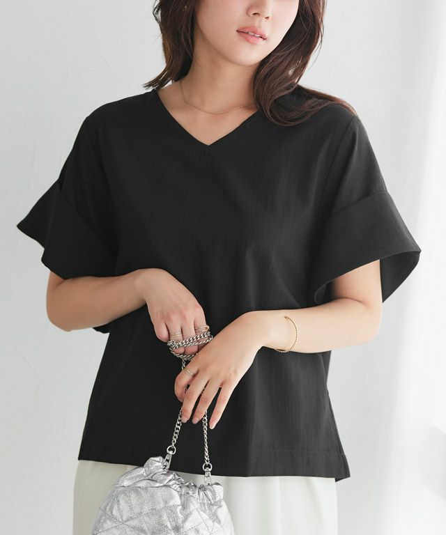 涼しげなネックラインを演出“Vネックターンバックブラウス”