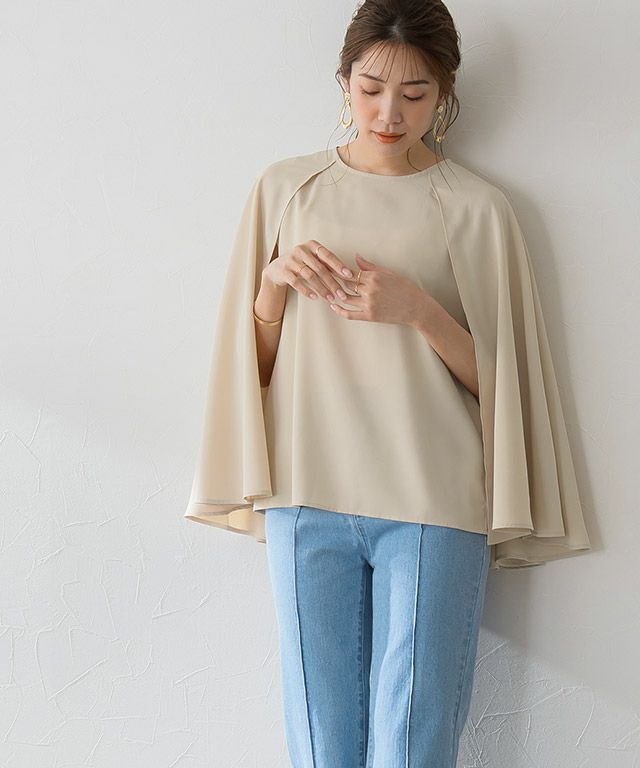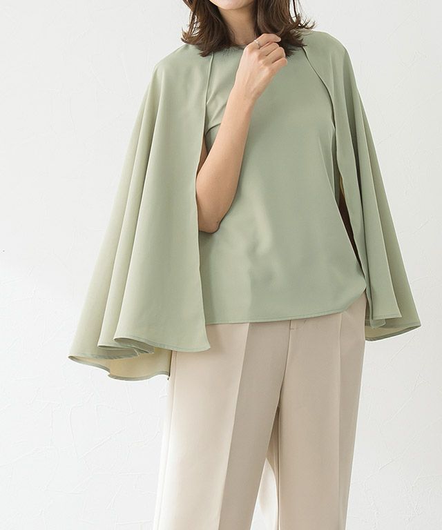 女性の上品さを演出してくれる“とろみマントブラウス”