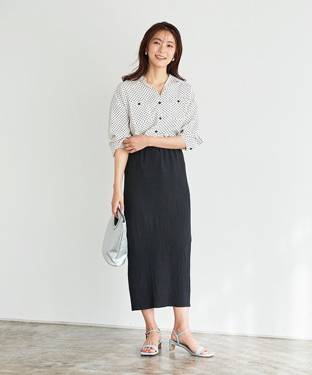 さらっとした質感が大人の印象に導き、ドット柄がマリンな印象をプラスしてくれます。