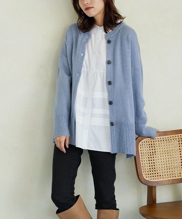また、ニット製品は生産の過程上「生地を織る際の糸の継ぎ目」繊維の「混紡」、プレス加工、製品洗い加工によって形やサイズ(5cm前後)に誤差が生じる場合がございますが品質上の問題はございません。