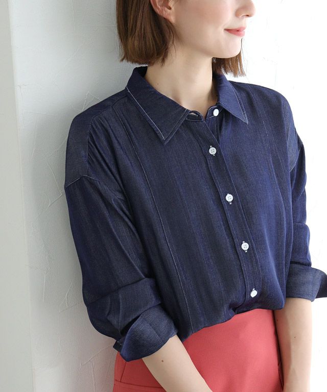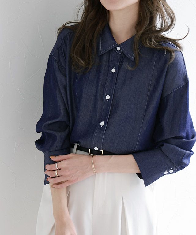 大人のこなれ感を演出する“シャンブレーライクシンプルシャツ” 光沢感とシャンブレーライクな表面が大人な雰囲気に導き、滑らかな肌触りが魅力的。 無駄なディテールを省きシンプルに仕上げ、一枚での着用はもちろんレイヤードスタイルもおすすめです。配色のステッチやボタンがシンプルながらもアクセントになり、ロングカフスがこなれ感をプラスします。 【ブランド】 marvelous by Pierrot(マーベラスバイピエロ)