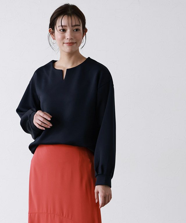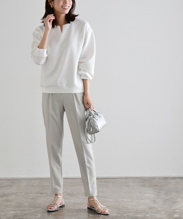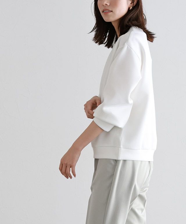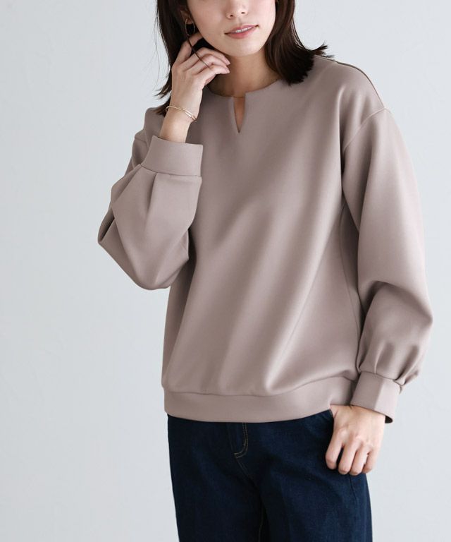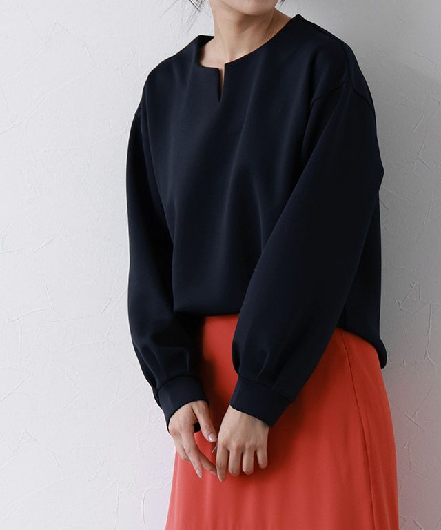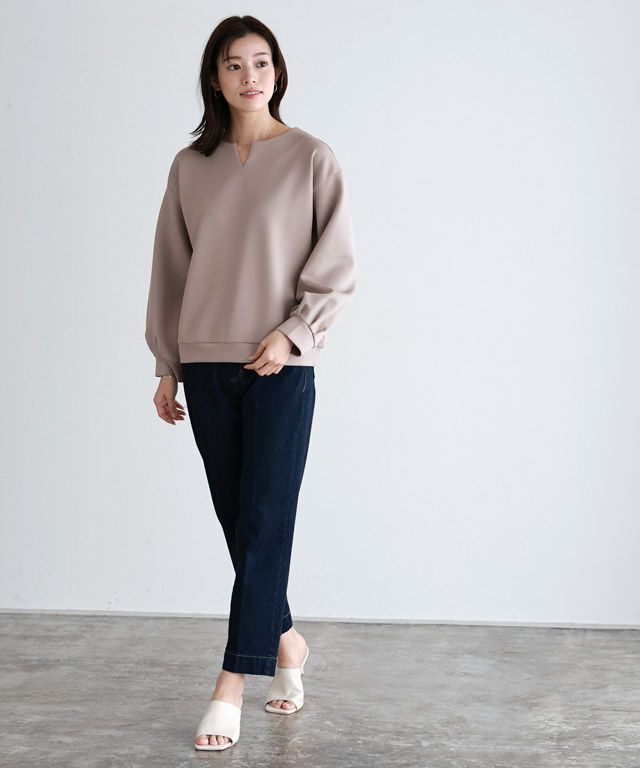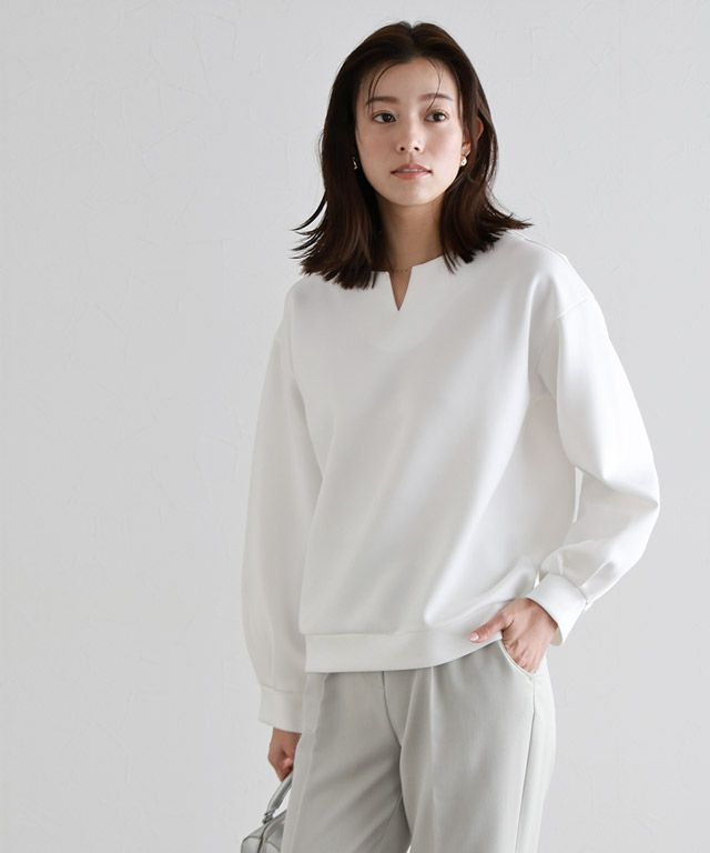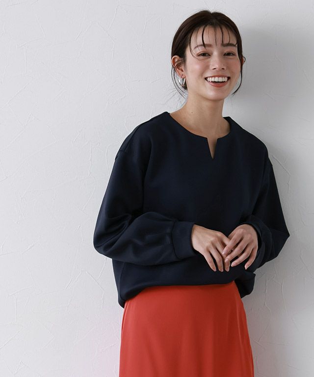 ダンボール素材が大人っぽく決まる、きれいめカジュアルなプルオーバー。シンプルながらも立体的なシルエットでこなれた大人のラフスタイルに導きます。デコルテ周りをきれいに見せてくれるキーネックデザインで抜け感をプラスします。
