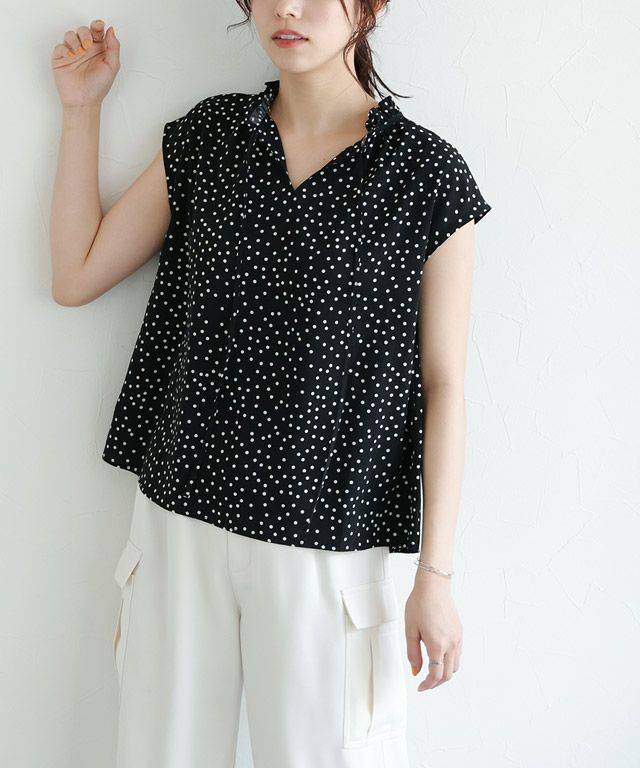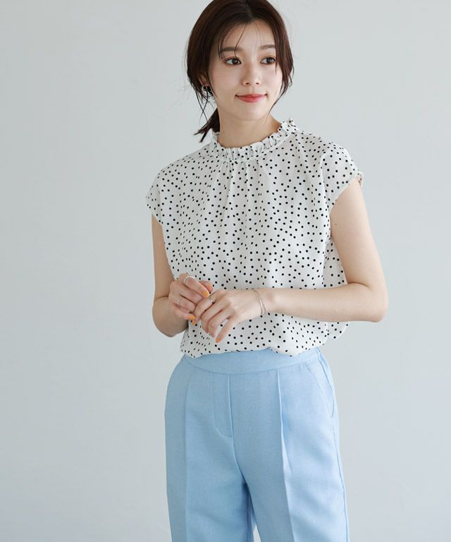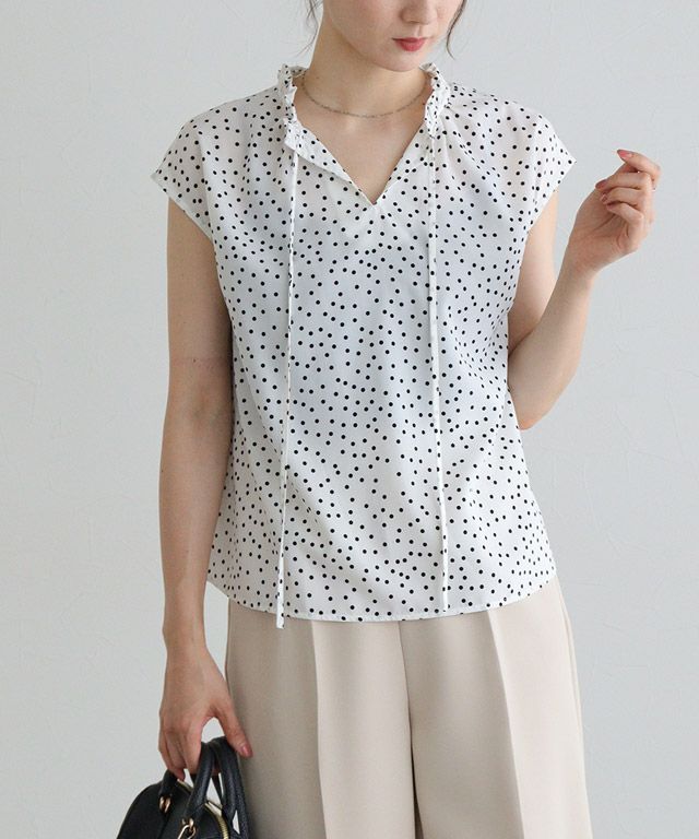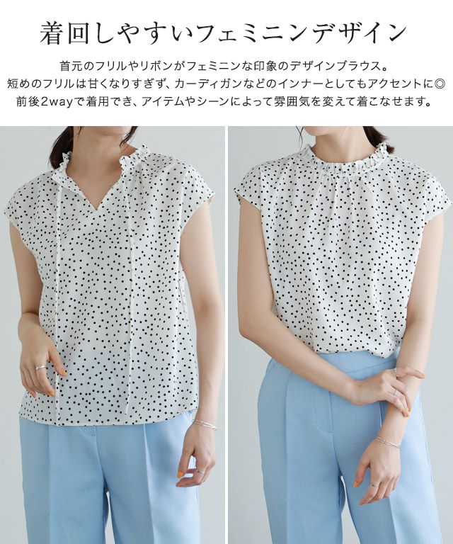 甘すぎず大人っぽく着こなせる“2wayドットフリルカラーブラウス”