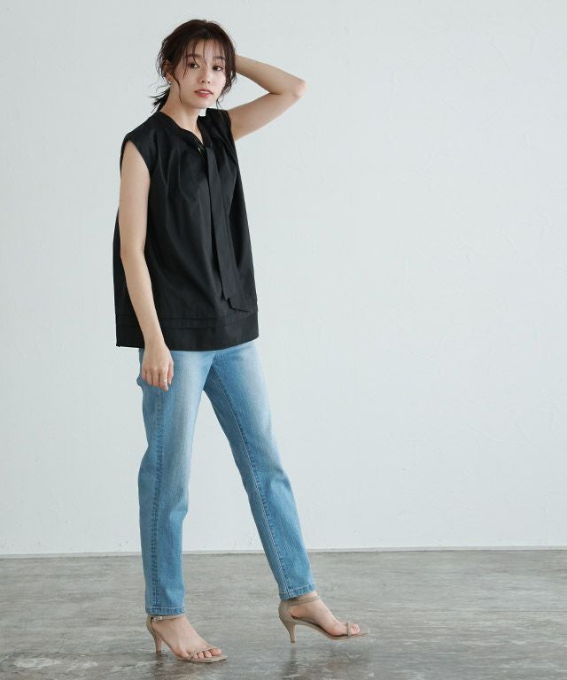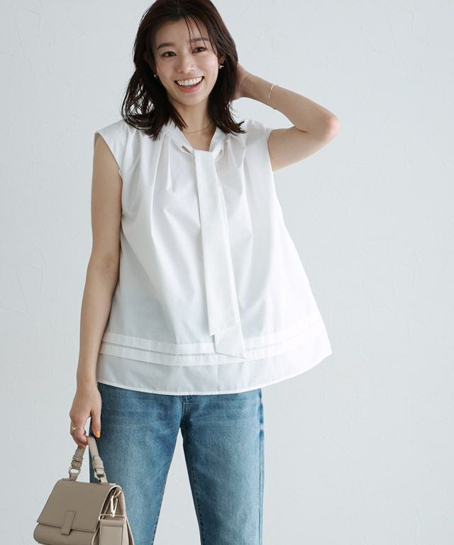 一枚で着映え感のある2wayタイフレンチスリーブブラウス”