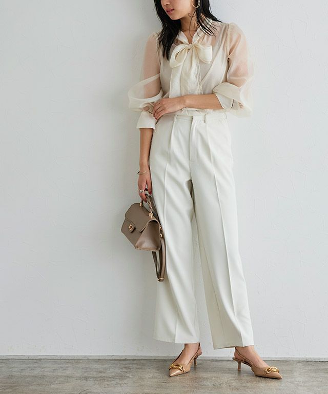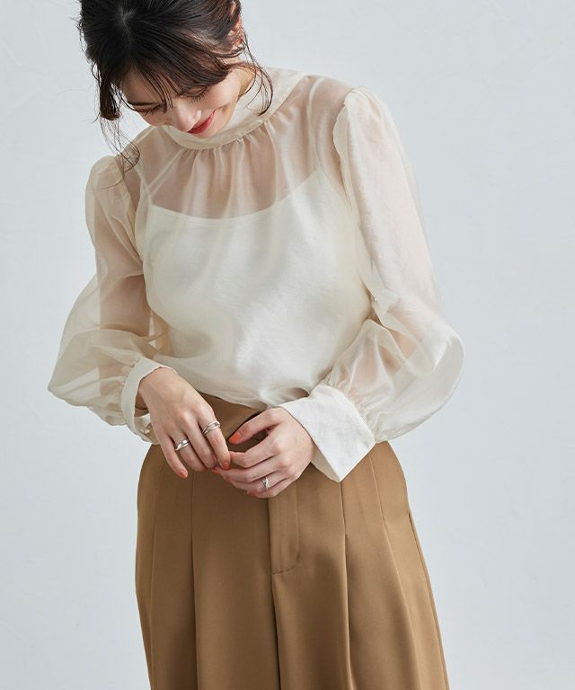 派手になりすぎず程良い光沢感と透け感が魅力的のオーガンジー素材を使用。スタイリングに取り入れるだけでトレンドライクな装いに仕上がります。