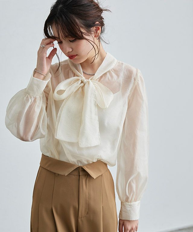 【アウトレットSALE!】オーガンジータイブラウス 【Pierrot】【スピード配送】