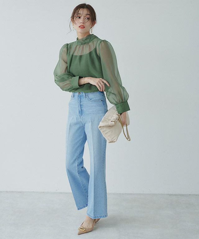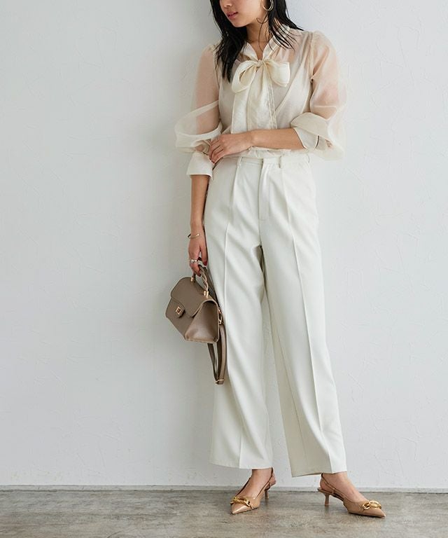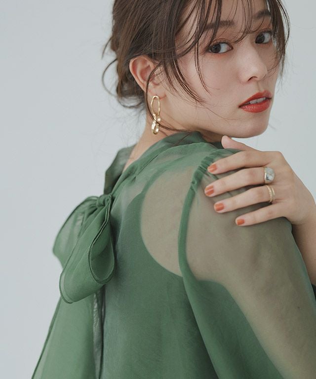 派手になりすぎず程良い光沢感と透け感が魅力的のオーガンジー素材を使用。スタイリングに取り入れるだけでトレンドライクな装いに仕上がります。