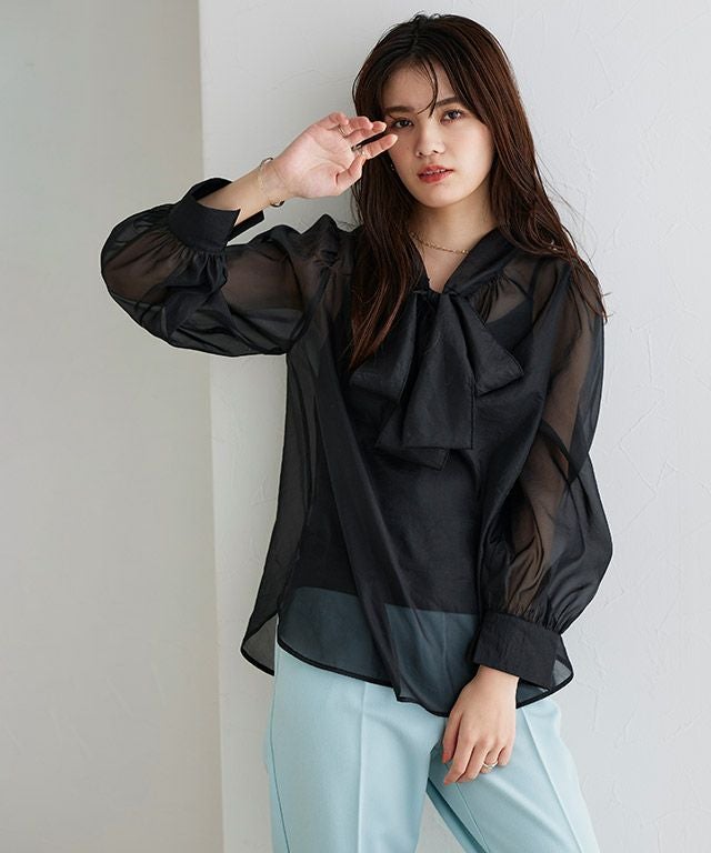 【アウトレットSALE!】オーガンジータイブラウス 【Pierrot】【スピード配送】