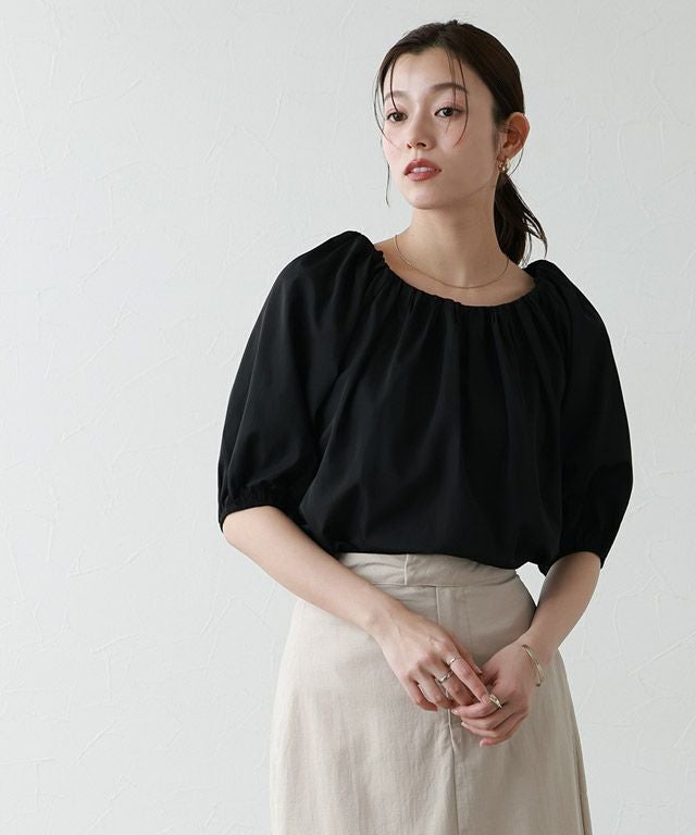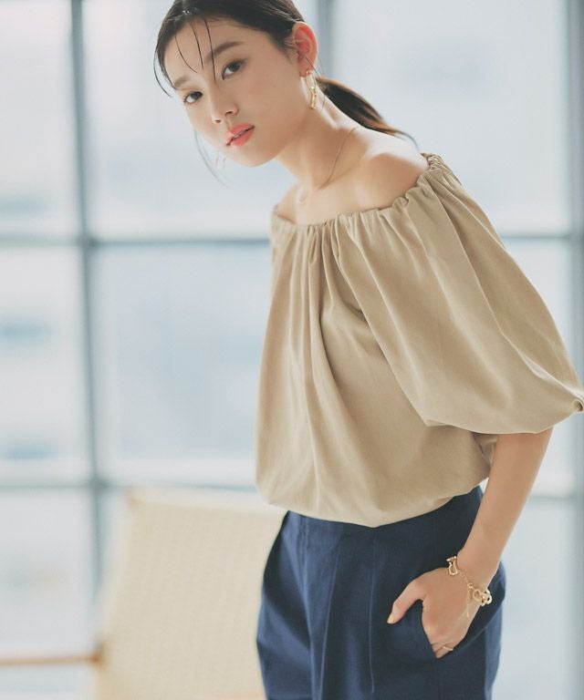 シンプルなパフスリーブ、トレンドのオフショルダーの2wayで着られるデザインブラウス。表情を変えて着回しができるアイテムです◎襟ぐり部分はゴムを入れることでオフショルダーにできる仕様にしています。カジュアルから上品スタイルまで着回せるアイテムです。