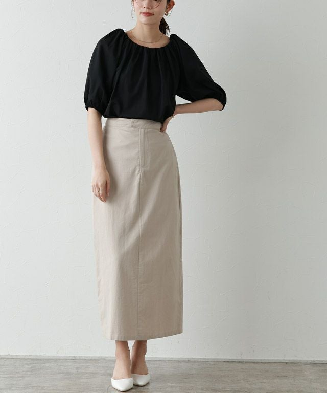 柔らかな風合いで程良いハリ感とつや感のある素材なので、カジュアルにもきれいめにも着回しができます。