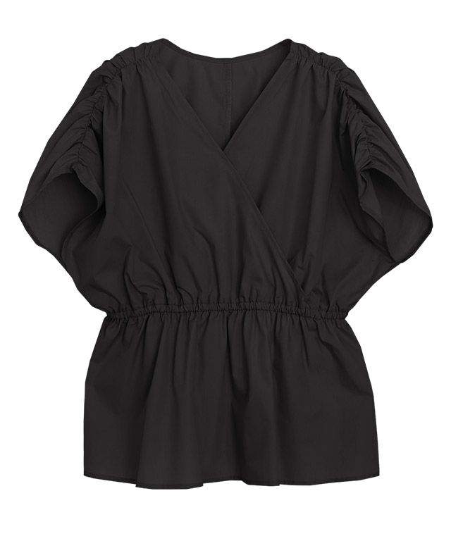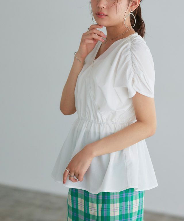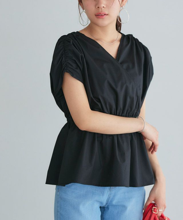 一枚で着映え感のある“カシュクールペプラムブラウス”
