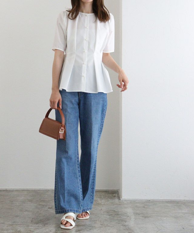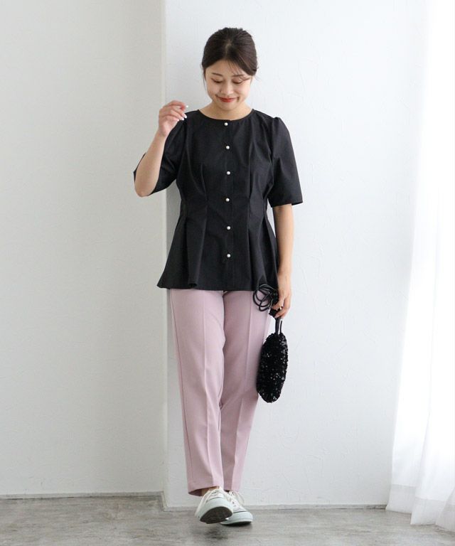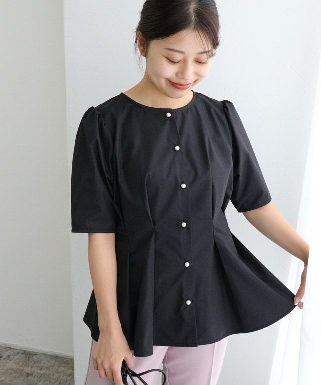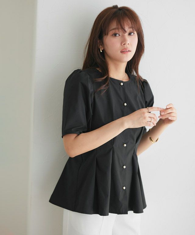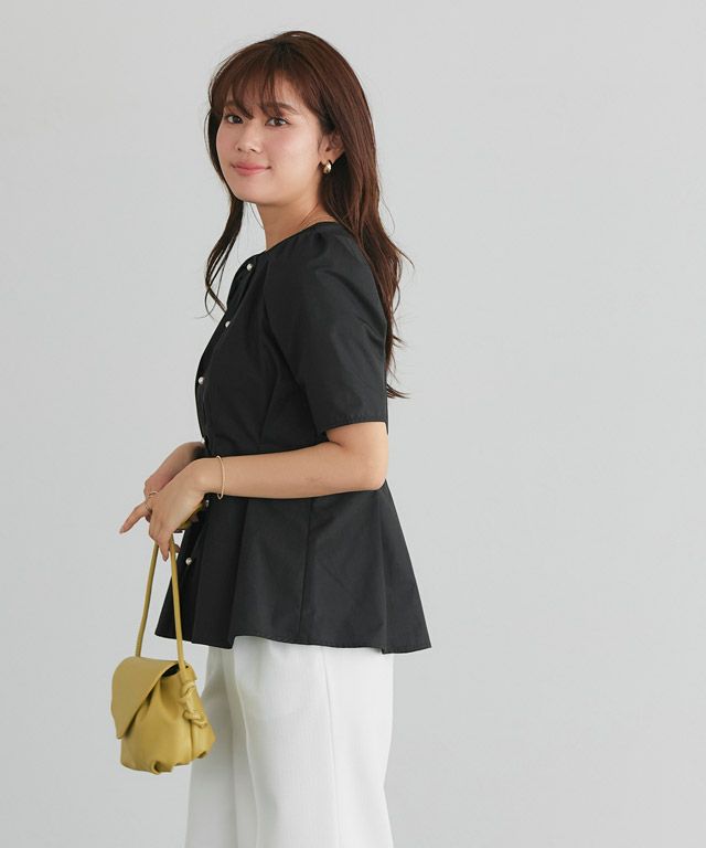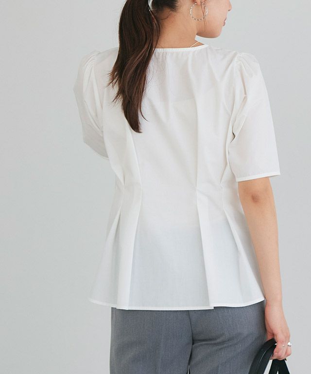 ウエストタックのペプラムシルエットがこなれ感のあるブラウス。窮屈感なく着用でき、タックがすっきりと見えを叶えます。立体感のあるパフスリーブで女性らしさをプラスし、二の腕周りをカバーしてくれます◎カジュアルにもきれいめにも着回せる一枚です。