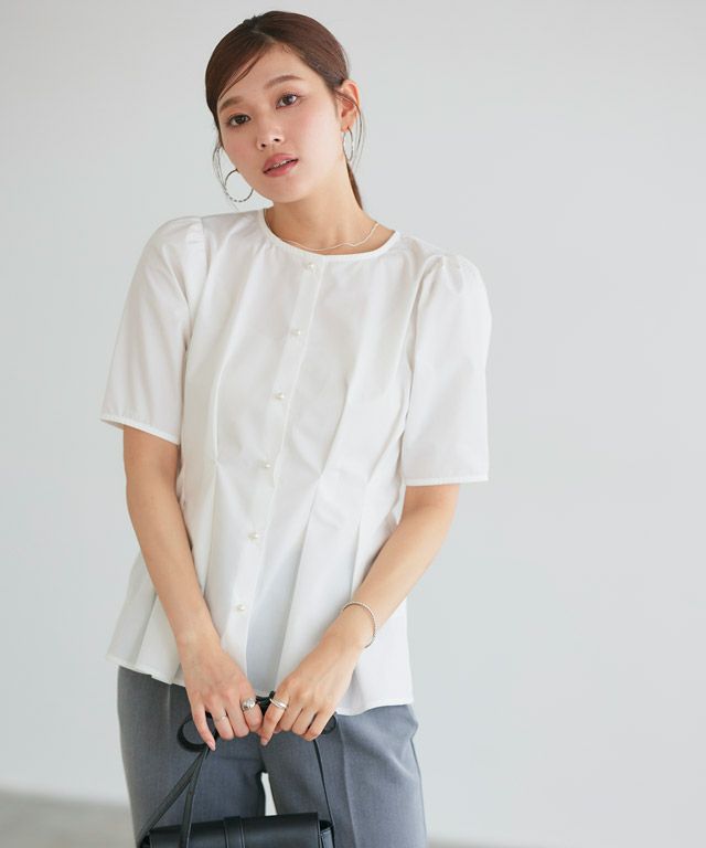 大人フェミニンに着映える“ウエストタックパフブラウス”